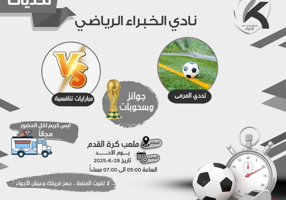 📍 المكان: كرة القدم - نادي الخبراء الرياضي